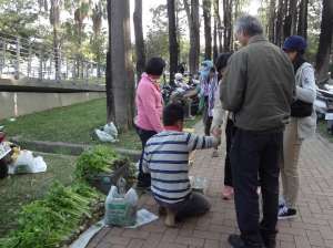 每周六稚銘都會帶兩箱蔬菜來到興大市集,由於遠從40公里外彰化濱海的伸港,都比一般的攤商晚了許多,每次僅能選擇市集裡最偏僻的角落;他的身上總是夾帶著些許泥土,而且經常赤腳席地而坐也不以為意,黝黑皮膚掩蓋不了灑脫開朗的笑容,深獲許多婆婆媽媽的疼愛!雖然它的蔬菜嬌小畸形或菜葉蛀蟲斑斑,有時還能看見蟲蟲活躍的蠕動著,在在證明他的蔬菜沒有使用農藥的特徵,因此,想要買到它的產品經常要預約,否則需要再等一個星期!